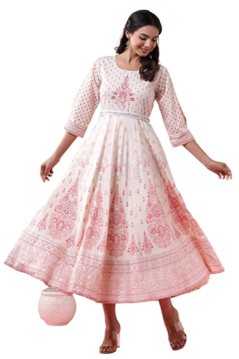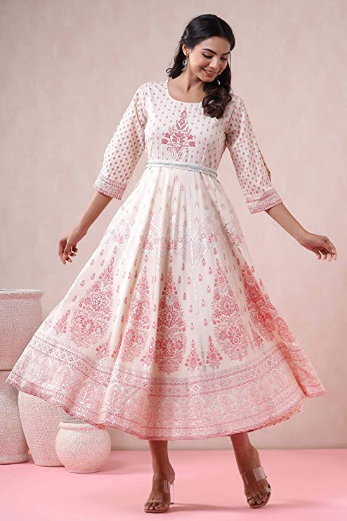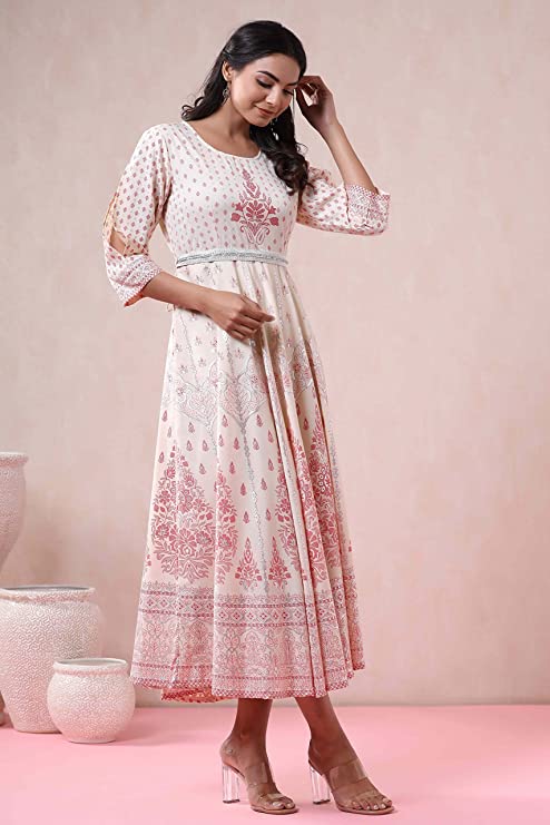 Generic NameArohiya Women`s Ivory American Crepe Printed Flared Dress