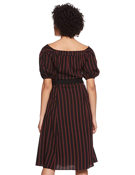 Product Details Material CompositionViscose StyleSkater PatternStriped Neck StyleBoat Neck Country of OriginIndia About this Item Color Name: Black Material: Rayon Machine wash Midi Stripe