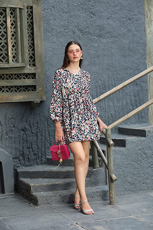 DHRUVI TRENDZ Women’s Rayon Full Sleeve A-Line Knee-Length Western Dresses for Women or Girls