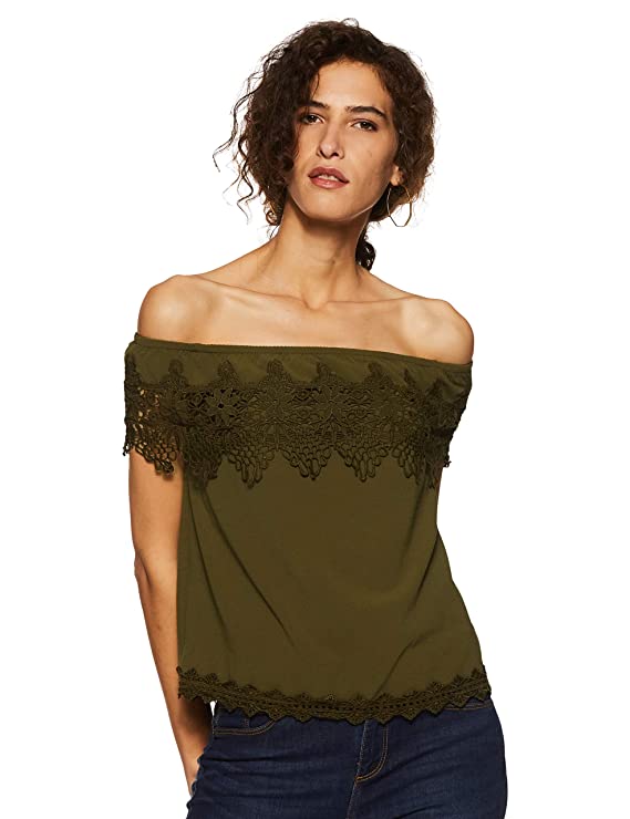 Kimiku Women Red Lace Short Sleeve Off Shoulder Top