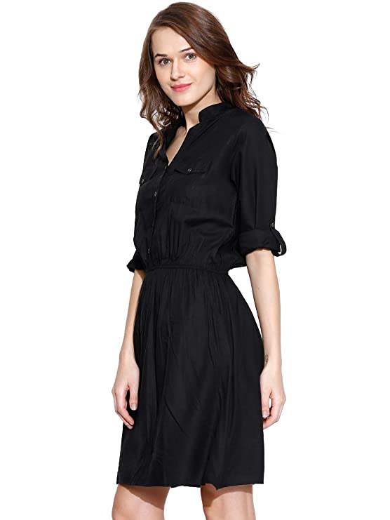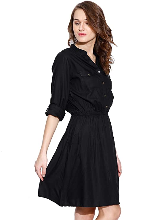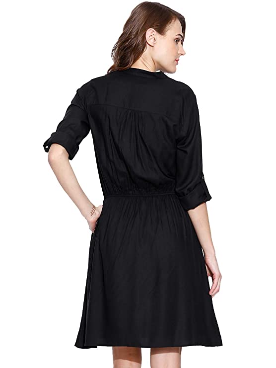 Flaunt sartorial elegance wearing Black coloured dress by Mira. Look classy and stylish in this piece and revel in the comfort of the soft rayon fabric.