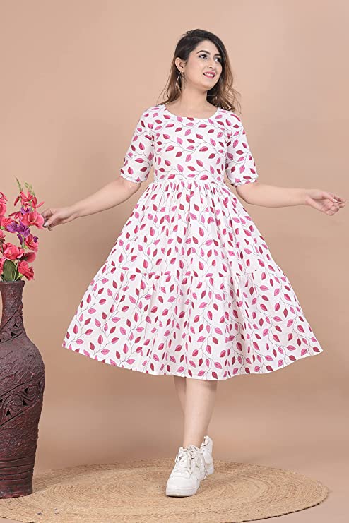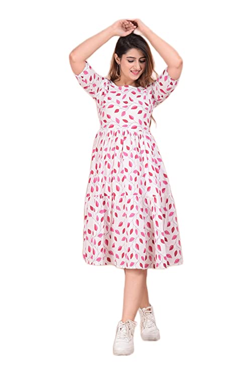 Product Details Material CompositionCotton StyleSkater PatternFloral Neck StyleRound Neck Country of OriginIndia About this Item Fabric: Cotton Style: Skater Length: Below Knee Length Sleeve Type: Half Sleeve Size Help – 36= Small, 38 = Medium, 40 = Large, 42 = X-Large, 44 = XX-Large