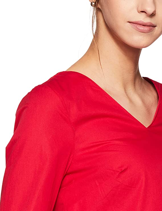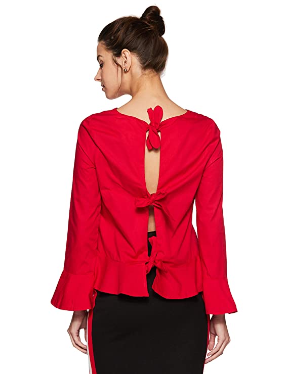 Vero Moda Women Red Solid V-Neck Long Sleeves Regular Fit Cropped / Short Casual Wear Top