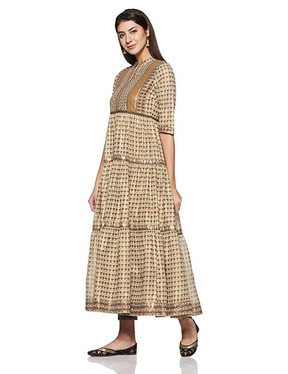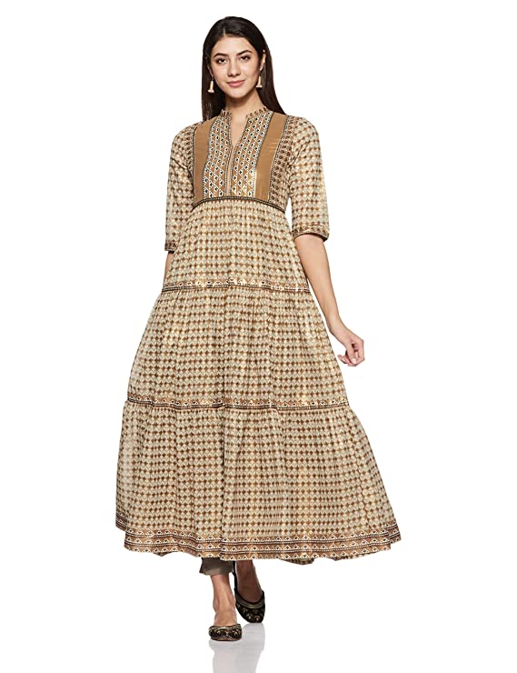 Mandarin NeckKurta-Print56″ L3/4 Slv